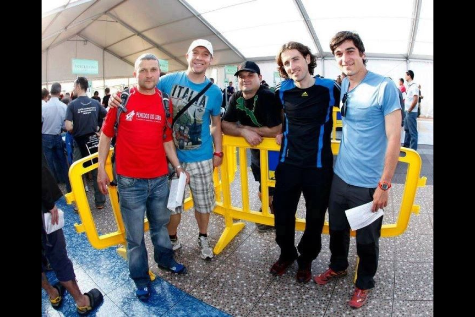 | Durante la recogida de dorsales Emilio, Jorge, Miguel, Alberto y yo |